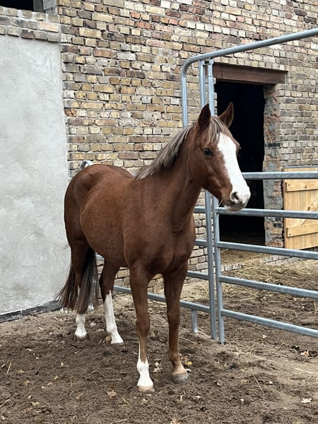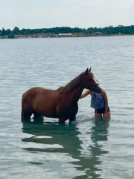Wir verkaufen unsere hübsche Reitponystute Dèjà vu, genannt Dolly, mit vielseitiger Veranlagung und Potenzial für Sport und Zucht. Sie ist Staatsprämienstute und daher auch für die Zucht interessant. Dolly ist ein- und zweispännig gefahren und zeigt sich dabei motiviert und zuverlässig. Unter dem Sattel ist sie angeritten in allen Grundgangarten, benötigt hier jedoch noch weitere Ausbildung und Förderung. Sie ist verladefromm, barhuf und sowohl Offenstall als auch Box über Nacht gewohnt. In der Herde verhält sie sich eher rangniedrig und unkompliziert. Im vergangenen Jahr hat sie an Mounted Games-Turnieren teilgenommen, hat sich in der Vergangenheit als Fahrpony sogar für das Bundeschampionat qualifiziert und kennt somit auch Turnieratmosphäre. Aufgrund ihres Ausbildungsstandes ist sie noch nicht für Kinder oder Anfänger geeignet, eignet sich aber für Reiter, die ein vielseitiges Pony weiter ausbilden möchten bzw. als erfahrenes Fahrpony. Videos vom Fahren und Reiten können auf Anfrage gerne zugesendet werden. Bei Interesse oder weiteren Fragen freuen wir uns über eine Nachricht.