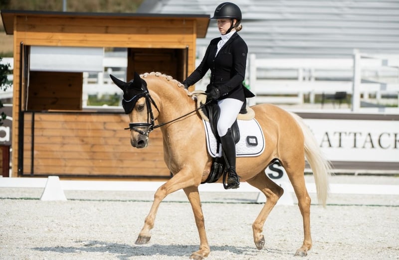 Mayami is a 14-year-old, highly experienced pony, regularly competing at the international level with scores of up to almost 72%. She is offered for sale as her rider is moving up to the Junior category. Recent X-rays from 2024 show no findings. The only issue is an allergy, but it does not affect her ability to train or compete – she functions completely normally. Just two weeks ago, she won the Polish Championships, and she has already competed twice at the European Championships.