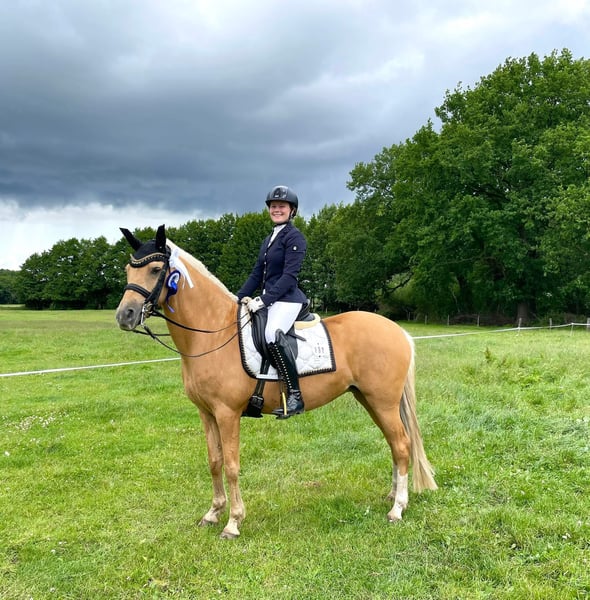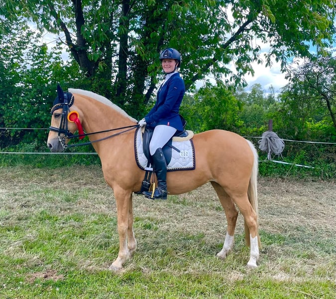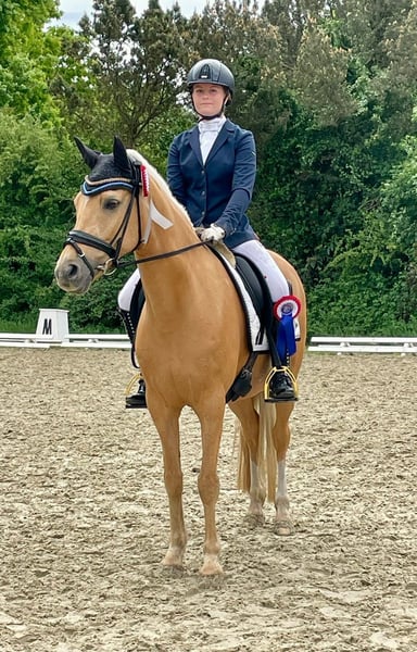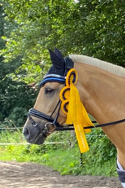 Verkaufe ganz schweren Herzens unsere Ponyprinzessin. Sie ist eine deutsche Reitpony-Stute – Palomino, Geburtsjahr 2011 und wurde über den Hengst Don‘t Worry und Arts-Dancer Boy gezogen. Sie ist nicht nur optisch ein echter Hingucker, trotz ihrer Größe von 146 cm deckt sie, im Hengsttyp stehend, sehr gut ab und wir wurden oft gefragt ob sie noch im Maß ist. Unsere Mary ist eine Schleifensammlerin, eine tolle Lehrmeisterin und eine Lebensversicherung in allen Lebenslagen. Sie geht selbstständig auf Anhänger und Transporter, schläft beim Schmied und beim Scheren schon mal ganz gerne ein. Auf Turnieren weiß sie sich zu präsentieren. Sie ist siegreich L* fast ausschließlich gegen Großpferde und hoch L** platziert- hier ist sicherlich noch Potential nach oben. Sie ist L** Lektionssicherung und auch von kleineren, schwächeren Reitern gut zu Händeln, sie war u.a. Kreismeisterin und Siegerin des Volksbank Cup‘s. Mary hat ein ganz liebes Wesen und ist wirklich eine Prinzessin. Sie ist für fast jeden Blödsinn zu haben, so schwimmt sie sehr gerne, liebt Ausritte und springt gerne- dies wurde bei uns allerdings nicht weiter gefördert. Als Mitglied der Niedersächsischen Ponyquadrillie hat sie mehrfach u.a. an der Eröffnungsfeier CHIO Aachen ((auf dem heiligen Rasen), dem Hamburger Derby, der Pferd&Jagd und vielen weiteren Veranstaltungen souverän teilgenommen. Bei uns war sie nie krank und nicht einen Tag schlecht gelaunt. Wir haben keine Not sie zu verkaufen und wir geben sie nur aus unseren Händen, wenn wir ein wirklich tolles Prinzessinnen Zuhause für sie finden. Bei wirklich ernsthaftem Interesse nehmen sie bitte Kontakt per WhatsApp unter 016097233628, mit uns auf.