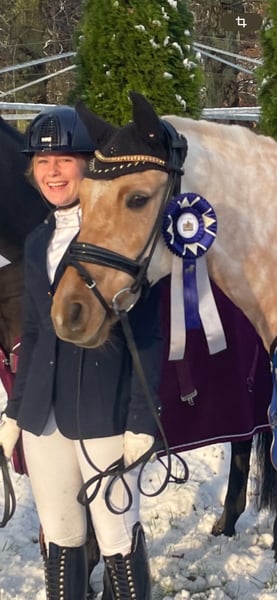 With a heavy heart, we are offering our pony princess for sale. She is a German Riding Pony mare – Palomino, born in 2011, and was bred from the stallion Don’t Worry and Arts-Dancer Boy. Not only is she a real eye-catcher in appearance, but despite her height of 146 cm, she covers very well in the stallion type, and we are often asked if she still meets the size requirements. Our Mary is a true prize winner, an excellent teacher, and a reliable partner in all aspects of life. She loads independently onto trailers and transporters, and she comfortably stands for the farrier and clipping. She knows how to present herself confidently at competitions. She has achieved success at L* level, mostly against larger horses, and has been placed high in L** classes – there is certainly potential for further development here. She is a secure L** level lesson horse and is easy to handle even for smaller, less experienced riders. She has been district champion and winner of the Volksbank Cup, among other accomplishments. Mary has a very sweet nature and truly is a princess. She is open to almost any kind of fun, loves swimming, enjoys hacks, and likes jumping – although we have not actively promoted her in this discipline. As a member of the Lower Saxony Pony Quadrille, she has participated confidently in several major events, including the CHIO Aachen opening ceremony (on the famous grass arena), the Hamburg Derby, the Horse & Hunt, and many others. She has never been ill with us and has never been in a bad mood. We are not in a hurry to sell her and will only part with her if we find a truly wonderful princess home for her. If you are genuinely interested, please contact us via WhatsApp at 016097233628.
