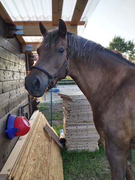 Cheval de travail / compagnon de monte, montable sur demande, poney allemand, robe baie ferrée
