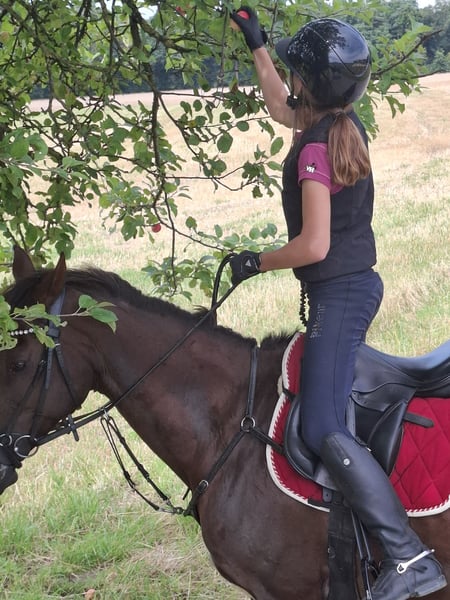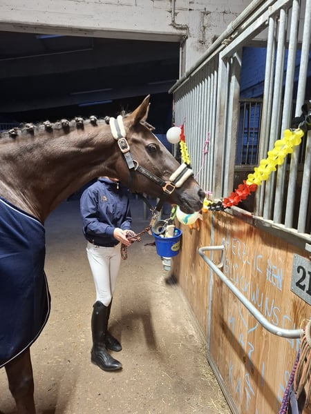 sucht neuen Wirkungskreis. Wir verkaufen unsere geliebte dunkelfuchs Ponystute. Geboren am 17/06/2007. Sie stammt ab von Kalimero aus einer Marsvogel Mutter. Eingetragen ist sie mit 1,49 im Mass. Unsere Tochter hat auf ihr das Reiten erlernt über Dressurreiter, Springreiter, E Springen. Das grosse Reitabzeichen (auf A Niveau) mit ihr erworben. Grösste Erfolge: 2023 E Tour in Gahlen 2ten Platz, Ponytour 2024 E Tour 2ten Platz auf dem Ponyturnier in Riesenbeck 2025 Einzelkreismeister in der E Tour des Kreises Borken 2025 Vizemannschaftskreismeister des Kreises Borken 2025 Mitglied des 8 Teams Westfalen 2025/26 im 8 Team für Westfalen 2025 FN Fairness Preis verliehen bekommen Das Pony hat über 60 Platzierungen. Sie hat aktuell Siege, sowie Platzierungen der Klasse E im Springen sowie in der Dressur. Sie ist sofort einsetzbar. Aber auch Ausritte, durch Wasser reiten, Wellenbahn, ohne Sattel reiten, hat den beiden viel Spass gebracht. Das selbständige Verladen ist für die beiden kein Problem. Wir würden uns wünschen dass sie noch einem Kind ihre Erfahrung weitergeben darf. Und als Partner ein neues Kind glücklich machen kann. Bitte nur ernsthafte Anfragen. Für das Probereiten werden 20 Euro verlangt, um ein Tourismusreiten zu vermeiden. Bei Fragen bitte telefonisch melden, unter der Nummer: 01722889873