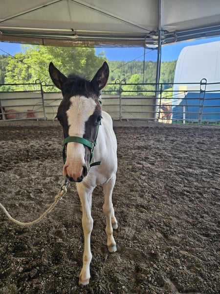 Pretty, very calm filly. Suitable for leisure riders. Family horse. Learns the basics of foal education until weaning. Grows up healthy on our large Black Forest pastures, in a herd environment. - Good conformation - Kind character - Easy to handle - Papers with ZfdP are applied for Mother: Ria (Pony without pedigree) Father: Ben Hour (Lewitzer mix, see stallion advertisement) **Entering the yard and pastures of the establishment for viewings as well as riding sale horses is always at your own risk! Exclusion of any warranty! We charge €50 for trial rides of our sale horses. This amount will be deducted when purchasing a horse.**