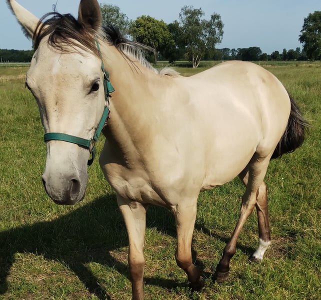 Ganz tolle Stute! Sie kann nicht nur in begehrter Farbe und im XXL Format punkten. Sie verfügt über drei sehr gute Grundgangarten und besticht desweiteren durch ihr einwandfreies Fundament, Geschlossenheit und ein sehr aktives Hinterbein. Zudem besticht sie mit einer sehr guten Halsung und wird ausgewachsen eine im Hengsttyp stehende Stute sein. Charakterlich ist sie eher rangniedrig, immer aufgeschlossen, kooperativ und hat noch nie einen falschen Tritt gemacht. Durch ihren liebenswerten Charakter können wir uns vorstellen, dass sie auch amateurgeeignet sein wird. Die Mutter war eine Warmblutstute Verb. Pr. St. Favarella (Fürst Grandios x St. Tropez x Frühlingsball). Vater ist Dating AT. Geschätzte Endgröße zwischen 1,55 - 1,60. Bitte Kontaktaufnahme nur telefonisch oder per WhatsApp 015755218756 und nur bei ernsthaftem Interesse.