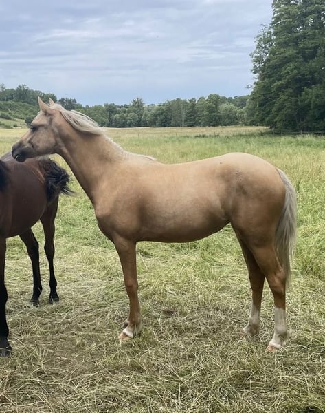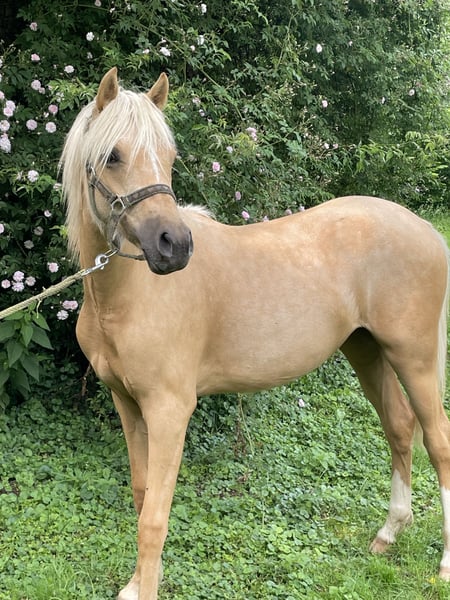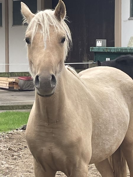 Unsere Blondie sucht DEN einen Bestplatz. Blondie ist ein Dt. Reitpony mit voller Abstammung. Sie ist am 15.03.24 geboren und derzeit 1,40m groß. Sie hat ein Herz aus Gold und ist sehr menschenbezogen und neugierig. Wir können sie uns gut als Kinderpony vorstellen weil sie jeden Quatsch mitmacht und weil sie einfach immer ruhig und gelassen ist und absolut nichts schlechtes an sich hat. Sie ist bei uns geboren und mit Kindern, Traktoren, allen erdenklichen Tieren aufgewachsen und genießt ihre Jugend aktuell mit 3 Fohlen und einer Stute. Zu den Fohlen ist sie ungemein sozial und spielt mit ihnen. Ihre Mutter war schon ein Top Kinderpony. Sie hat zahlreiche Siege mit besonders kleinen Kindern mit nach Hause gebracht. Dressur, Springen, Vielseitigkeit. Wir denken und hoffen, dass sie genau so ein perfektes Kinderpony wie ihre Mutter wird und damit jemanden richtig glücklich macht. Natürlich auch für die Zucht interessant. Natürlich beherrscht sie alles was sie in diesem Alter können muss: führen, putzen, Hufschmied und verladen. Wir wünschen uns für sie DEN perfekten Platz mit Familienanschluss und Liebe zu ihr.