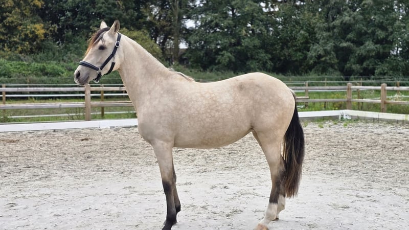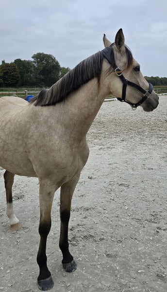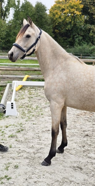 Notre Clara est une jument très gentille et équilibrée. Elle est très sociable et adore être câlinée. Elle est chez nous depuis son sevrage, a bénéficié d'une éducation affectueuse avec la meilleure alimentation et toujours suffisamment d'espace pour se mouvoir, en hiver comme en été. Les vermifuges et le maréchal-ferrant ont bien sûr été effectués régulièrement. Je souhaite pour Clara des personnes aimantes qui l'éduqueront et la soutiendront dans le sport. Elle a de bonnes allures, un dos long et beau, très correcte, un fondement stable, des sabots impeccables et en plus, elle est magnifique. 😊 Le pedigree parle de lui-même en termes d'hérédité et de montabilité. (voir document) Avec un caractère aussi affectueux et posé, elle peut devenir un poney fiable pour les enfants après une formation appropriée. Pour un intérêt sérieux, n'hésitez pas à nous contacter et nous convenons d'un rendez-vous pour faire connaissance. Nous ne vendons pas d'animaux à des marchands ou à des établissements scolaires.