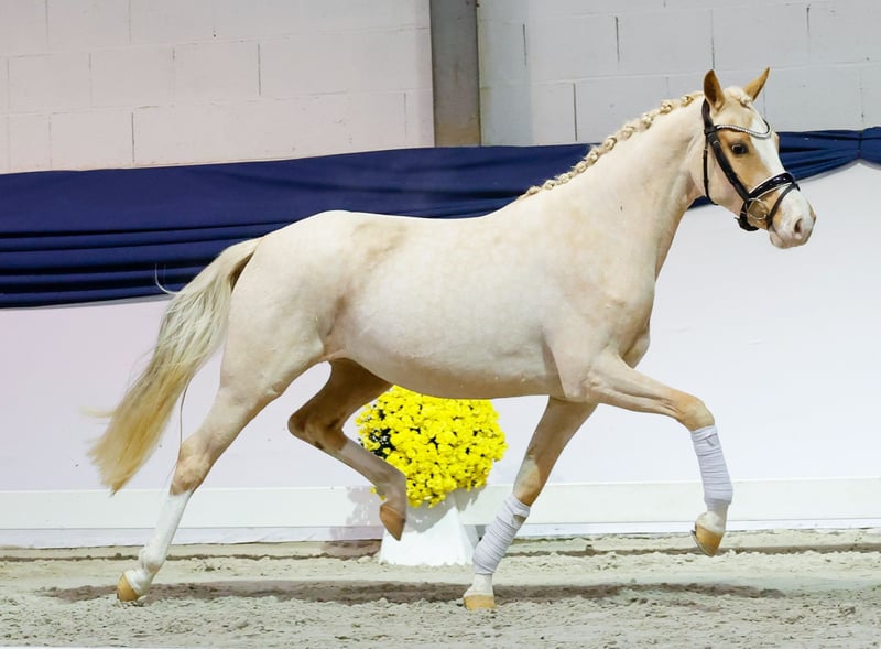 In unserer Kollektion stehen streng selektierte Youngster f�r alle Anspr�che: Ausbildungs-, Zucht- und Kinderponys Hier gelangen Sie zur Gesamtkollektion: https://ponyforum.auction Dressurausbilder aufgepaßt, hier kommt ein Pony für die Championatstour! Die zweijährige Nova Scotia zeigt schon jetzt mit ihrem elastischen und schwungvollen Bewegungsablauf und ihrer hervorragenden Selbsthaltung, was hier für ein Rohdiamant auf die Ausbilder wartet. Dazu kopfklar, leistungsbereit und ausgesprochen hübsch und auffällig bunt - was braucht ein gutes Nachwuchspony mehr? Vater FS Numero Uno ist aktueller Seriensieger in der S-Klasse und seine Nachkommen begeistern mit Rittigkeit und Ausbildungswillen. Novas Vollbruder Heiligenbergs Nils Holgersson wurde gekört und aus Novas Mutterstamm entspringen u.a. der Leistungshengst Dressed in Gold, der Bundeschampion Tanzbär usw. Direkt vom Züchter.