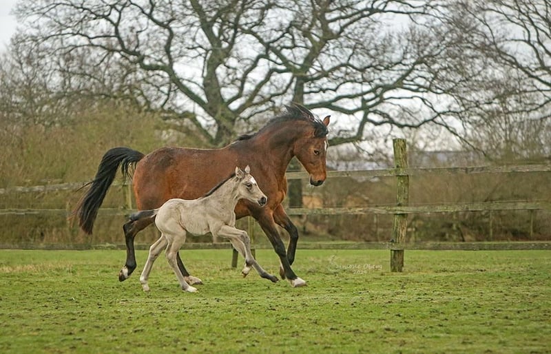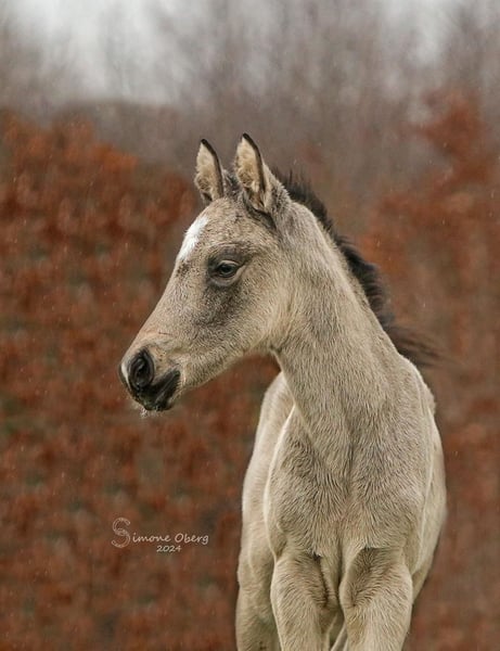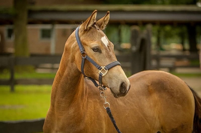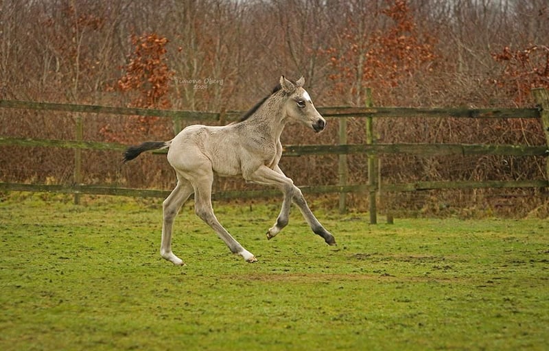 Deze mooie, zelfverzekerde dochter van GoldGarant is rechtstreeks van de fokker te koop. Dit veulen is half februari zonder complicaties geboren en ontwikkelt zich uitstekend. Passende verzorging met meerdere uren weidegang, voeren met PodoStart en aaien om spelenderwijs het ABC van het veulen te leren. Het veulen is al halstertrainer en is heel open en vriendelijk naar mensen. Ze belooft in de toekomst een geweldige pony te worden voor alle terreinen van het paardrijden. De moeder (148cm, staatspremie, MentanoK/ Gribaldi Trak.) is de nakomeling van een zeer sociale en rijdbare sportpartner. 2 van de 3 oudere zussen (de 3e gaat dit jaar naar het SLP) hebben ook de staatspremie gekregen. Het veulen kan tegen september gespeend worden en dan neem ik het graag mee naar zijn nieuwe thuis (in overleg) - tot die tijd wordt er gezorgd voor verdere training en verzorging met alles wat het muisje nodig heeft om gezond op te groeien.