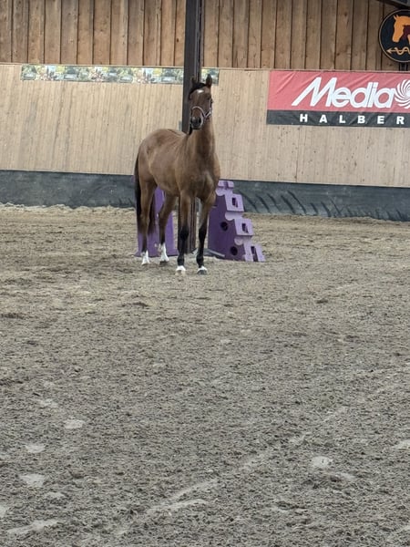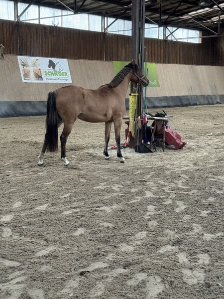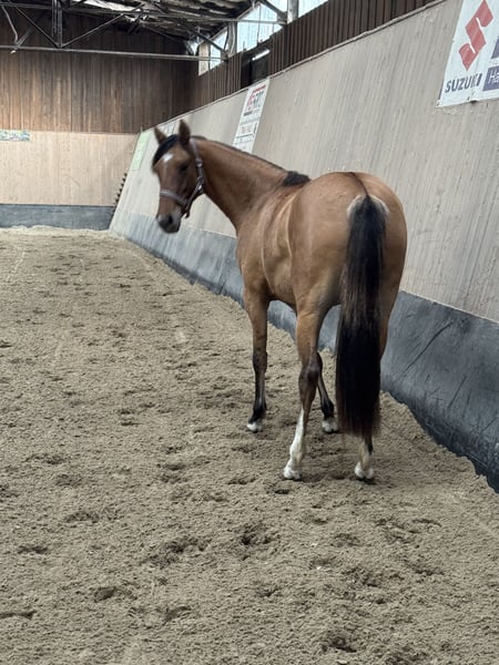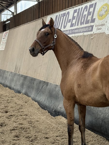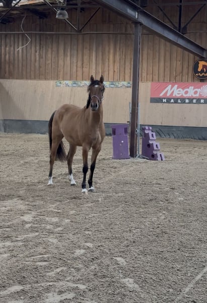 🌟 XXL Pony with top pedigree, expressive appearance, and promising potential for sale 🌟 We are offering our young rising star, Frederike, for sale – an XXL pony of exceptional quality, with remarkable expression and great prospects for the sport. 🐴 Name: Frederike 📅 Born: 2023 📏 Height: approximately 15.2 hh 🧬 Pedigree: • Sire: HJK Charming Boy • Damline: Success-breeding Vivaldi – Frederike herself in pony size ✨ Special features: • Mare with lots of expression – her presence is elegant, alert, and full of charisma • Always moving loosely through her body, with a very good, active hind leg – already showing significant talent for dressage • Raw and fresh from the pasture – ideal for personalized training • Very good basic gaits with natural rhythm and impulsion • Striking, distinctive color • Wonderful temperament: personable, affectionate, enjoys being groomed and pampered • Intelligent and eager to learn – quickly understands what is asked of her 🏆 Breeding & Sport: • Half-brother licensed, with successful progeny • Siblings successful in competition • Brother and sister sold at auctions in the young horse sector ⚠️ Note: This offer is aimed at quick decision-makers, as Frederike will soon begin her training. The price will increase with ongoing development and training. 📞 Contact: +49 177 2979844 Further information gladly by phone or WhatsApp. Serious inquiries only, please.