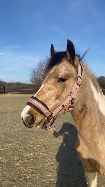 Z ciężkim sercem musimy niestety rozstać się z naszą niemal 3-letnią klaczą rasy Deutsches Reitpony, mieszańcem. Ta decyzja nie jest dla nas łatwa, ponieważ jest ona prawdziwym koniem serca i codziennie nas zachwyca. Młoda klacz nie tylko wyróżnia się ładnym wyglądem, ale przede wszystkim jej wyjątkowo przyjaznym i spokojnym charakterem. W codziennym kontakcie jest całkowicie posłuszna, przytulna i chętna do kontaktu z ludźmi. Gdy już zdobędzie Twoje serce, zrobi dla Ciebie wszystko. Zna już dzieci, samochody oraz mniejsze zwierzęta i zawsze zachowuje spokój i opanowanie. Również w wagonie jest absolutnym skarbem – bez problemu się do niego załadowuje i jedzie spokojnie. Już została lekko lonżowana i wykazuje dużą chęć do nauki oraz uwagę. Pierwsze małe skoki również już z radością pokonała, okazując odwagę i radość z tego sportu. Oczywiście doskonale zna codzienny kontakt i jest tam bardzo łagodna. W stosunku do innych koni jest towarzyska i świetnie się z nimi dogaduje. Ze względu na jej wspaniały charakter i dotychczasowy rozwój widzimy w niej idealną klacz dziecięcą z dużym potencjałem na przyszłość – zarówno w rekreacji, jak i w sporcie. Życzylibyśmy jej kochającego domu, w którym będzie dalej rozwijana i doceniana. Oddajemy ją wyłącznie w najlepsze ręce! W przypadku poważnego zainteresowania prosimy o kontakt.