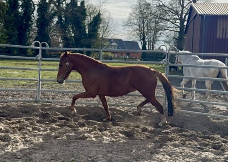 Wegen Bestandsverkleinerung und altersbedingte Aufgabe der Zucht bieten wir hier eine Bewegungsstarke Deutsche Reitponystute zum Verkauf an. Sie ist roh und kommt direkt aus der Aufzucht .