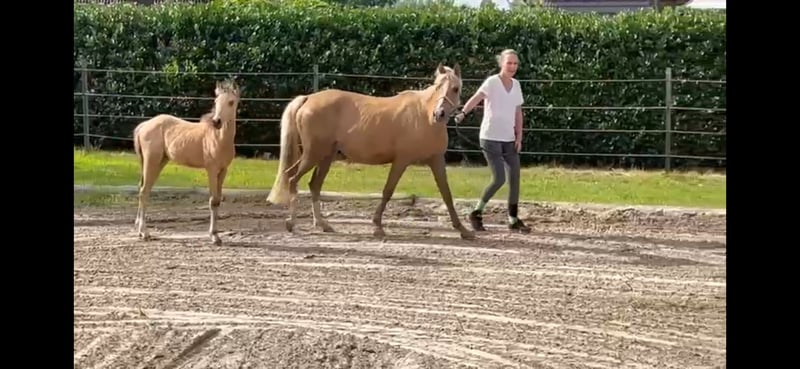 Szykowna klacz z kucykiem Hilkens Dance Forever. Maluch ma bardzo otwarty charakter i dobre GGA. Jest dobrze wychowana u kowala i może być odpowiednio prowadzona. Bardzo nieustraszony w kontaktach z dziećmi i innymi zwierzętami. Wideo na życzenie nie ma problemu. Zapraszamy do kontaktu przez WhatsApp.
