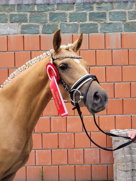 Zum Verkauf steht eine 3 jährige Reitponystute mit super Grundgangarten direkt vom Züchter aus einem erfolgreichen Stutenstamm. Die Stute ist in Westfalen als Staatsprämienstute ausgezeichnet worden, dabei wurden alle 3 Grundgangarten mit einer Wertnote von 8.5 bewertet. Aktuell ist sie in Reitpferdeprüfungen gegen Großpferde hoch platziert. Sie hat zur Zeit ein Stockmaß von 1.44 m. Hier wächst ein Dressurpony für den gehobenen Ponysport heran. Bei Interesse melden Sie sich gerne unter 015204105724