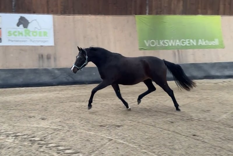 Verkaufsanzeige – Deutsche Reitponystute „Dark Lady“ (3 Jahre) Aus Bestandsverkleinerung steht die vielversprechende Deutsche Reitponystute Dark Lady zum Verkauf. Sie ist 3 Jahre jung, kommt frisch von der Wiese und bietet beste Voraussetzungen für Sport und Zucht. Abstammung & Aufzucht • Aufgewachsen im Herdenverband • Sozial, klar im Umgang und artgerecht großgezogen • Unverdorben und roh – ideal für eine individuelle Ausbildung Bewertungen als Fohlen • Championatsfohlen • Typ: 9,0 • Exterieur: 8,0 • Bewegung: 8,5 • Schritt: 9,0 • Gesamteindruck: hervorragend Exterieur & Entwicklung • Aktuelles Stockmaß: ca. 145 cm • Modernes, korrektes Pony mit viel Ausdruck • Sehr guter, elastischer Bewegungsablauf Charakter • Neugierig, freundlich und menschenbezogen • Zeigt sich lernwillig und aufmerksam • Roh und noch nicht gearbeitet – ein Pony zum selbst Ausbilden Einsatzmöglichkeiten • Sportliches Nachwuchspony mit Qualität • Zuchtstute dank hervorragender Typ- und Bewegungsnoten • Für ambitionierte Ponyreiter, Ausbilder oder Züchter. Volles Papier Vater Next Generation x Coke saint of the Life x Danny Gold