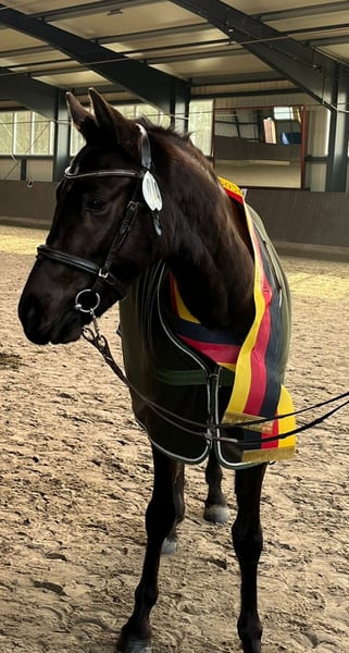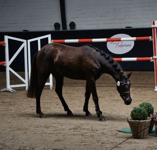 Wunderschöne liebe 3 jährige Dt.Reitpony Stute Sonderfarbe ! Smokey Black Stm 146 cm Freispringchampionat Siegerin 7.03.26 in Saterland Manier: 8,2 Vermögen: 8,5 Vater: Cadlanvalley Sir Ivanhoe Muttervater : Lauries Crusador xx MMuttervater: Goodmann ( Graf Grannus ) Der Vater Sir Cadlanvalley Ivanhoe ist frei getestet von diesen genetischen Krankheiten: ECVM frei PSSM1 u. PSSM2 frei CA frei WFFS frei Gait Gen frei Sie ist eine sehr unerschrockene ( auch am Sprung ) Stute die sehr lernwillig und leistungsbereit ist. Sie steht gerade in den Anfängen ihrer Ausbildung, und nun bei ihrem ersten Start in der Öffentlichkeit (Freispringchampionat Saterland ) hat sie unter Beweis gestellt in fremder Umgebung trotz ihres jungen Alters sich auf ihre Aufgabe zu konzentrieren und ihr Potenzial auszuschöpfen. Wurde dann auch direkt mit einem Sieg belohnt. 🏅 Sie ist im Handling unproblematisch Schmied, Hänger usw alles kein Problem. Mutig allem neuen gegenüber und immer händelbar. Sie besitzt drei sehr gute GGA und ist dadurch sehr vielseitig einsetzbar. Dressur, Springen und Vielseitigkeit ( Gelände) Zur Zeit wird sie gerade anlongiert der Preis steigt bei weiterer Ausbildung ! Standort Niedersachsen Raum CLP 10 5🥕🥕
