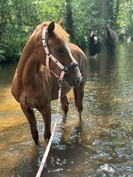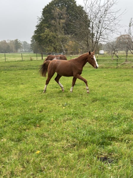 Verkaufe eine charmante deutsche Reitpony-Stute, geboren im April 2023. Diese hübsche Fuchsstute besticht durch ihr freundliches Wesen und ihre kompakte Größe, mit einem Stockmaß von ca. 148 cm. Sie ist sicherlich perfekt für den Freizeitbereich geeignet. Mit ihrem angenehmen Charakter und ihrer guten Grundausbildung ist sie ideal für Reiter, die ein zuverlässiges und liebenswertes Pony suchen. Eine tolle Gelegenheit, ein junges und vielversprechendes Reitpony zu erwerben, das sowohl im Alltag als auch in der zukünftigen Turnierkarriere Freude bereiten wird. Mila ist derzeit noch nicht angeritten, sie ist verladefromm, artig beim Tierarzt sowie beim Hufschmied! Bei Interesse meldet euch sehr gerne :)