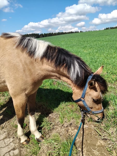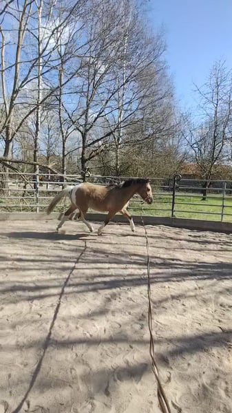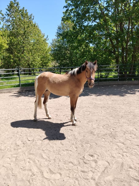 Unsere liebe Jungstute in absolut rarer Sonderfarbe sucht nach ihrem 5-Sterne-Zuhause. Wer einen Farbtupfer für den gehobenen Freizeitsport sucht, ist bei ihr richtig. Ein paar Eckdaten zu ihr: - robust im Herdenverband aufgewachsen - kennt Offenstall/ nachts Box - ist sehr dem Menschen zugewandt - ist verladefromm und brav bei der Hufpflege - ist longiert, kennt Arbeit im Roundpen, Sattel, Kappzaum, Knotenhalfter - hat sehr schöne Bewegungen und baut schnell Muskulatur auf - ist sehr gelehrig: kann auf feine Kommandos Schenkelweichen, Konterschulterherein, Hinlegen, Kompliment angefangen - kennt Spaziergänge und zeigt sich hier ruhig und unerschrocken -ist gesundheitlich regelmäßig durchgecheckt und altersgemäß geimpft, bei uns war sie nie krank Gezogen wurde sie in Deutschland auf dem Gestüt Zollmann, ihre Mutter ist eine RP-Stute, ihr Papa der homozygot vererbende Grullo-Paint-Hengst Pepsi. Im März wird sie dreijährig und wäre bereit zum schonenenden Anreiten/ Gewöhnen ans Reitergewicht. Die Vorarbeit hierfür ist bereits geleistet. Auf Wunsch kann dies auch bei uns vor Ort noch erfolgen. Für weitere Infos, Videos und Fotos können Sie uns gerne per Whatsapp kontaktieren. Es gilt Platz vor Preis, uns ist ein perfektes Match sehr wichtig. Transport kann gegen Kostenübernahme im Umkreis von ca 200km geleistet werden