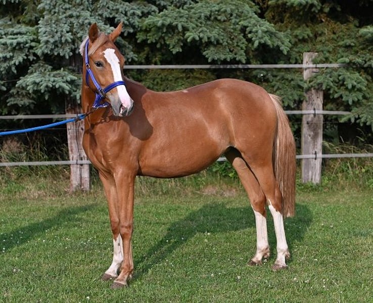 Nous vendons notre jument de poney de selle de deux ans (*2023). Elle descend du cheval étalon vainqueur "Dallmayr K" et a été un poulain champion. Sa mère "Wild Rose" est une jument primée d'État et lauréate de son test de performance des juments, et elle descend du "BKS White Light" et de "Tassilo" (Welsh B). De la lignée maternelle, de nombreux poulains champions et juments primées d'État ont déjà été élevés. Si vous êtes intéressé, veuillez nous contacter uniquement par téléphone, SMS ou WhatsApp au 0049 1725488966.