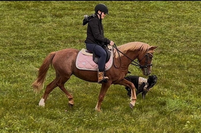 Verkaufe selbstgezogenes Deutsches Reitpony – Stute, geb. 2021, Fuchs „Nessi“ ist die Tochter einer XXL DRP Staatsprämienstute und eines gekörten Welsh B Leistungshengstes. Sie bekam als Fohlen die Silberprämie im Rheinland. Bei mir geboren und aufgezogen, hat sie die ersten 4 Jahre ihres Lebens unter Artgenossen auf der Weide verbracht. Seit dem Sommer ist sie nun zur Ausbildung in Hessen und wird dort bereits auch mit und unter Kindern gearbeitet. Durch ihr absolut liebes Wesen ist sie das perfekte Kinderpony.