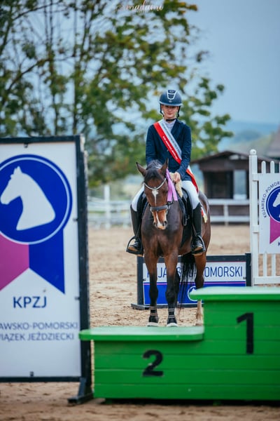 I am selling a talented 4.5-year-old pony who is looking for a loving new home. Nayman is a pony with a big heart for jumping - he has never refused despite his age, confident in the arena. He started competing this season under a teenager and became the vice champion of the Kujawsko-Pomorskie Voivodeship in the Amateur pony category, achieving a very good style score of 1.33. He competes at a level of 70 cm. At competitions and at home, he is trouble-free. He has not been ill, is healthy, and has no vices, coming straight from the breeder. He is trained at the level of Class P in dressage and will also excel in this discipline. Approximately 137 cm at the withers, Group C. A horse with great potential and a good temperament. He is stabled near Włocławek. For interested parties, I can send videos of his rides. Trial rides are paid.