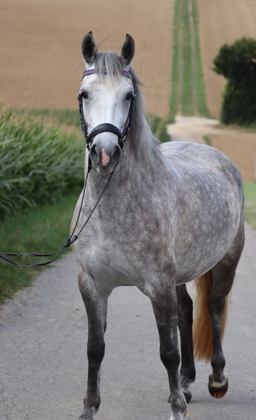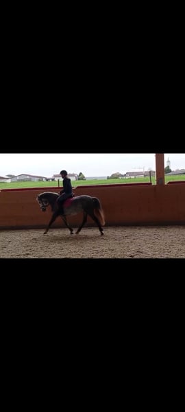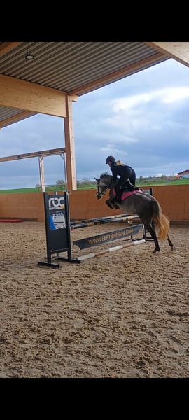 Miss Bubble , 4-jährige Schimmelstute, sucht ihr passendes Zuhause. Altersentsprechend ausgebildet, A*-Springen fertig, brav und lernwillig. Leicht in der Hand, fein am Bein, mit etwas Go, aber immer händelbar. Sehr klar im Kopf. Traumpony für ambitionierte Reiter – egal ob Dressur, Springen oder Freizeit. Super brav im Umgang, kein Bocken oder Steigen, lässt sich auch ohne Sattel reiten. Kennt Halle, Platz und geht gelassen ins Gelände. Lebt im Offenstall in gemischter Herde mit 26 weiteren Pferden, sehr sozial. Verladen, Hänger fahren und Schmied sind absolut kein Problem. Wird nur verkauft, da meine Tochter absolut kein Interesse an der reiterei hat. Nur in gute, fördernde Hände! Keine Händler oder Schulbetriebe. Kein Notverkauf.