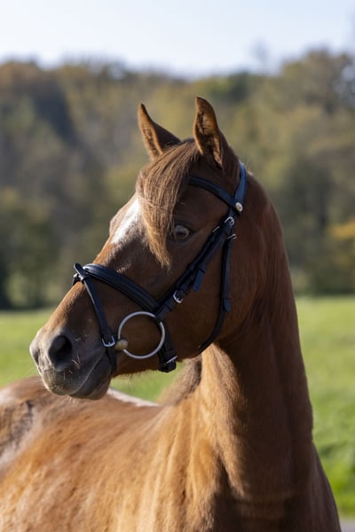 Million Coco ist eine 4-jährige Fuchs-Stute von Million Reasons. Million Reasons war Siegerhengst 2018 in Westfalen und war für das Bundeschampionat qualifiziert. Mittlerweile ist er erfolgreich in England unterwegs. Seine Vollschwester Marry the Night (Wurde bei uns auch ausgebildet) geht international bis 130cm. Die Mutter Coco haben wir 2,5 jährig vom Züchter gekauft und war all die Jahre ein tolles Kinderpony in unserem Schulbetrieb. Aufgrund Ihrer Abstammung haben wir uns dazu entschlossen sie vor einigen Jahren als Zuchtstute einzusetzen. Million Coco ist das zweite Fohlen von Coco. Coco hat sich auch gleich mit ihrer neuen Reiterin für das „Finale der Minis“ in Frankfurt qualifiziert. Million Coco haben wir selber gezogen und ausgebildet. Sie wird von einer jungen Amazone und auch von Kindern geritten. Sie springt einen kleinen Parcours. Sie ist immer gesund bisher gewesen. Sie kennt Wiese mit mehreren Pferden/Ponys, LKW und Hänger fahren ist auch kein Problem. Sie ist regelmäßig beim Schmied und beim Tierarzt. Im Umgang ist sie ein richtiger Schatz. Die Kinder können auch Bodenarbeiten mit durchführen. Sie lernt sehr schnell und dadurch ist das Arbeiten mit Ihr sehr einfach. MwST. ausweisbar