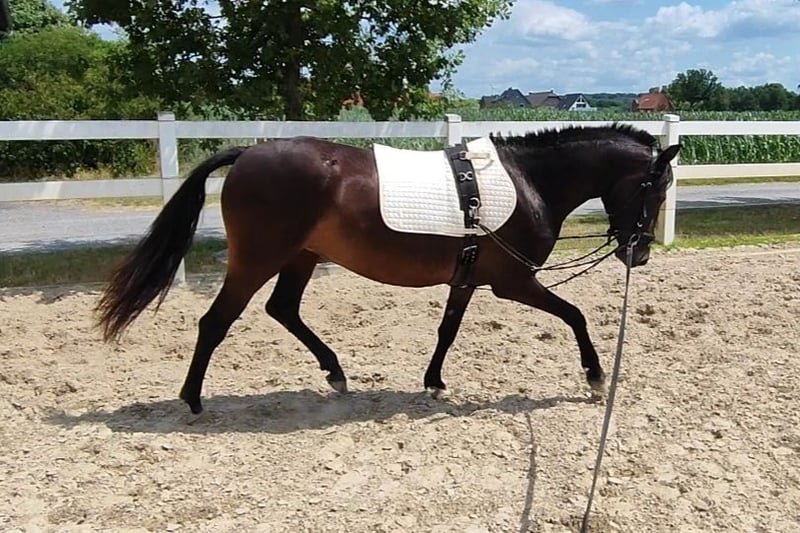 Miss Marpel to typowa 3-letnia niemiecka klacz pony z kompaktową budową ciała i zrównoważonym usposobieniem. Ma trzy bardzo dobre podstawowe chody i obecnie mierzy 144 cm. Zachwyca nie tylko wyglądem, ale przede wszystkim swoim charakterem. Miss Marpel jest zawsze przyjazna, odporna na stres i ciekawska. W codziennym obcowaniu jest bardzo miła, bezproblemowa, ma jasny umysł i jest absolutnie przyjazna dla dzieci. Zna czyszczenie, podnoszenie wszystkich czterech kopyt oraz pracę z ziemi. Miss Marpel jest obecnie delikatnie wprowadzana w pracę na lonży. Uczy się bardzo szybko, jest przy tym pracowita i zrelaksowana. Jej wielką pasją jest skakanie. Żadne cavaletti nie jest dla niej za wysokie. Dlatego doskonale nadaje się do sportów skokowych i wszechstronnych. Posiada odwagę i zdolności. Miss Marpel pochodzi od ogiera wszechstronnego MC Fly High D (Mr. Hale Bob x Principal's Ass) z naszej klaczy głównej Holly Go Lightly (Henry x Balthasar). Jej półsiostra Arika (hodowana przez nas, dostępna w Rimondo pod nazwą Arika 9) jest jednym z najbardziej udanych pony w NRW. Niestety, Miss Marpel rozwinęła wiosną tego roku letnią alergię skórną, dlatego jest sprzedawana znacznie poniżej wartości. W przypadku zainteresowania czekam na telefon lub wiadomość. Chętnie poświęcę czas na rozmowę lub indywidualne przedstawienie na miejscu. Pierwsze wideo jest aktualne. Drugie wideo pochodzi z końca września 2024 roku.