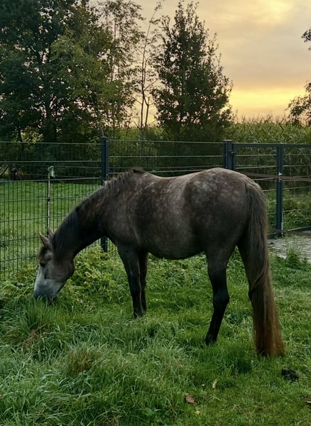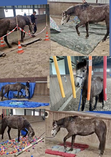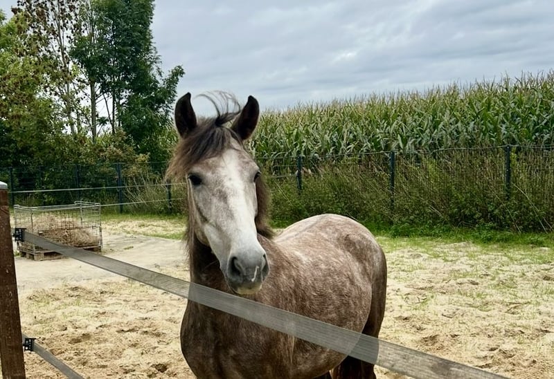 Zum Verkauf steht meine 4-jährige Schimmelstute „Susi“ mit einem Stockmaß von 144 cm (offiziell gemessen). Sie ist Schmiede und Verladefromm. Aktuell steht Sie mit 2 WB Wallachen im Offenstall und ist sehr robust. Unarten sind nicht bekannt. Susi wurde im letzten Herbst schonend angeritten. Über den Winter durfte sie noch einmal eine Pause genießen und ist nun seit einigen Wochen wieder im Training. Unter dem Sattel zeigt sie sich sehr brav und unkompliziert. Sie deckt auch kleinere Erwachsene gut ab und wird ebenso von Kindern geritten. Außerdem konnte Susi bereits erste Turnierluft schnuppern. Dennoch sehe ich sie weniger als sportlichen Turniercrack, sondern eher als vielseitiges Freizeitpony mit Allround-Talent. Ich denke, die Bilder sprechen für sich. Bei ernsthaftem Interesse freue ich mich über eine Nachricht. Um dem jungen Pony unnötig viele Proberitte zu ersparen, berechnen wir eine Gebühr, die beim Kauf selbstverständlich verrechnet wird.