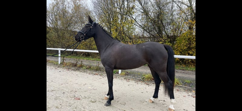 Tolle Ponystute von Hulapalu ZV WE x Stukhuster Ricardo go for Gold. Diese Stute ist sowohl im Umgang als auch beim Reiten sehr brav. Sie ist stets motiviert und sehr leicht zu reiten. Sie wurde bereits auch schon von Kindern geritten wobei sie ihren einzigartigen Charakter unter Beweis gestellt hat. Sie ist ca. 145 cm groß und hat sehr gute Bewegungen. Bei entsprechender weiterer Ausbildung wächst hier sicherlich ein zukünftiges Schleifenpony mit FEI-Qualität heran. Sie entspringt aus einem hoch erfolgreicher Stutenstamm. Sowohl gekörte Hengste als auch erfolgreiche Sportponys sowie Leistungsstuten gingen aus diesem Stamm hervor. Bei Interesse oder Fragen schreiben Sie gerne eine WhatsApp oder rufen an unter: 0173/7387104