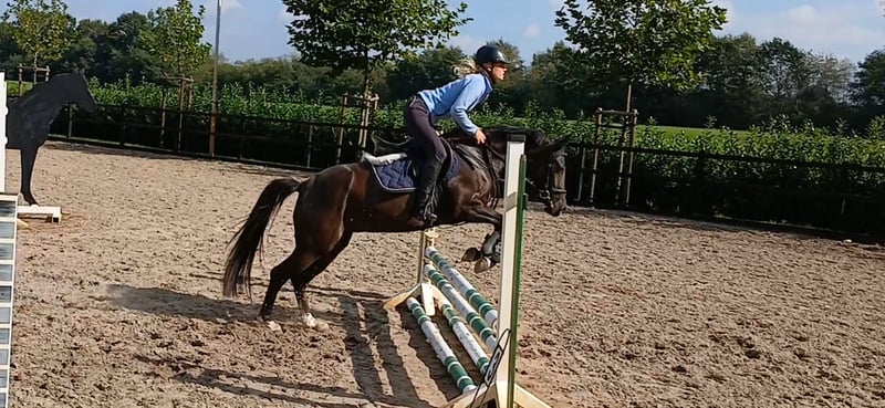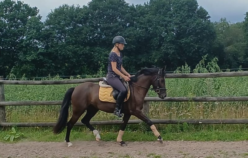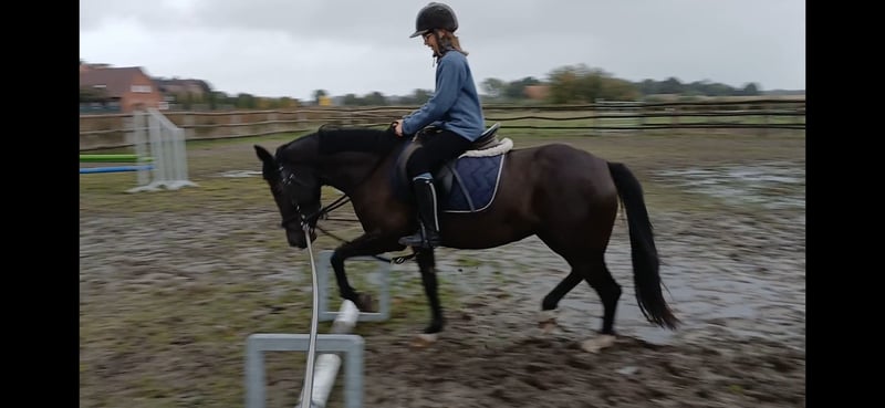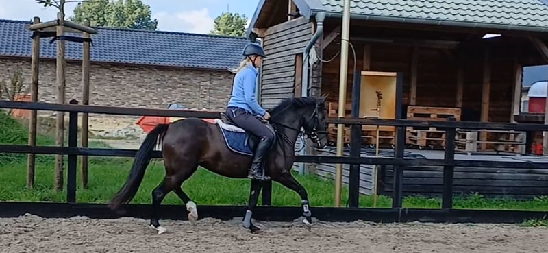 This pony mare has everything your heart desires. In handling, she is absolutely well-behaved and relaxed. Nevertheless, she has the necessary go under the rider. She has three above-average basic gaits and is always ready to perform and motivated. Appropriate for her age, she has been backed. She has already successfully completed her first small jumps under saddle as well. She enjoys this as well. She works great and brings joy to the daily work. These qualities are the result of a very successful breeding program. Several sons have already been approved from her mother. Additionally, the offspring from this line have been highly successful in mare shows and in sports. The father of this mare (Hulapalu ZV WE) has already placed multiple times internationally in M-level show jumping at the age of 7 and has also been successful in dressage. All in all, this pony is a real gem with its heart in the right place.