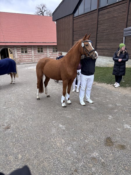Verkaufe eine elegante Deutsche Reitpony-Stute, geboren im Jahr 2022. Klar im Kopf und sehr lernwillig. Wird von einem 14 jährigen Mädchen geritten. Die hübsche vierjährige Fuchsstute überzeugt durch ihre charmante Erscheinung und ihr freundliches Wesen. Mit einem Stockmaß von 146 cm ist sie perfekt für ambitionierte Nachwuchsreiter und Ponyreiter geeignet. Sie ist vielseitig im Springen ausgebildet und zeigt bereits viel Talent sowie eine gute Springtechnik. Dank ihres ausgeglichenen Charakters und ihrer guten Grundausbildung ist sie sowohl für den Sport als auch für den Freizeitbereich bestens geeignet. Diese vielversprechende Reitpony-Stute bietet eine hervorragende Basis für die weitere Ausbildung und Entwicklung. Sie ist gesund, gut rittig und bereits in der Haltung sowie im Umgang sehr zuverlässig. Ein echtes Pony für alle, die auf der Suche nach einem talentierten Nachwuchstalent sind!