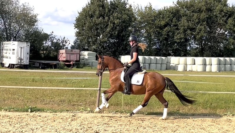 For sale is this wonderful expressive 4-year-old riding pony mare with FEI potential. Coco stands out not only for her excellent gaits but also for her character and rideability. In daily work, she always shows motivation, allowing for the playful integration of first L-level lessons into her training. From a sporting perspective, she is a true dream pony and ready to follow in the footsteps of her big brother (Chocoversum). Due to her excellent pedigree and sport-successful lineage, she is also interesting for breeding. However, we can also imagine Coco well in a mother/child duo. German Riding Pony Born in 2021 Approx. 146 cm Cosmopolitan x FS Dior de Luxe Full sister to Chocoversum (Vice Bundeschampion) Association premium mare Placed in A-level dressage A video can be sent upon request. For further details, please feel free to contact us for a personal conversation. Calls only after 4 PM 0174/ 7991486