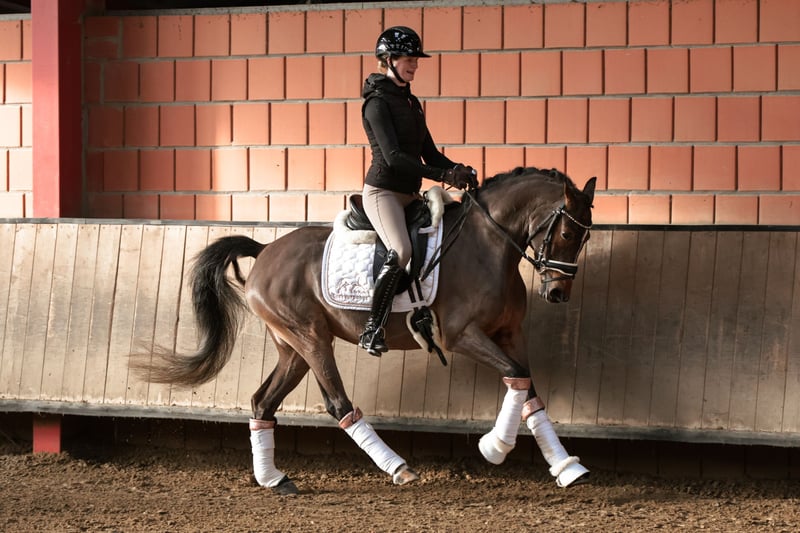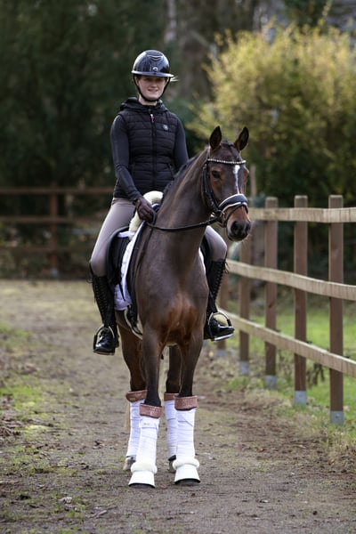 Diese auffällig hübsche Ballerina ist eine absolute Offerte für das Bundeschampionat. 3jährig wurde sie vom Westfälischen Verband im Rahmen der Eliteschau zur Staatsprämienstute gekürt und auch jetzt gerade 4jährig unter dem Sattel zeigt sie, wie viel Qualität in ihr steckt. Die Stute hat Ehrgeiz, lernt unheimlich schnell, ist im Umgang ein Schatz und wird mit weiterer Ausbildung ein ganz tolles Dressurpony mit Potential für FEI. Derzeit ist sie für Kinder und Anfänger allerdings noch nicht geeignet, da sie noch weitere Ausbildung benötigt und einen Reiter, der ihr die nötige Sicherheit vermittelt. Wir haben einen Halbbruder aus der gleichen Mutter, der im Trab Noten bis 9,0 erhalten hat, im Westfalenchampionat im Finale platziert war, Dressurpferde L 5jährig gewonnen hat und jetzt auf dem Weg zur Klasse M ist. Ein TÜV sowie Röntgenbilder ohne Befund liegen vor. Die Stute kann in Lünen angeschaut und probegeritten werden. Foto: Amelie Nier
