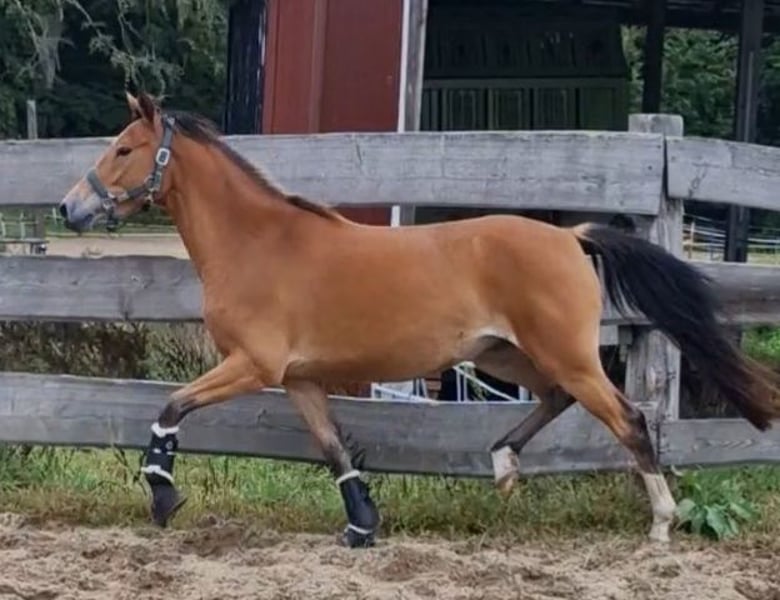 Deze jonge pony imponeert met drie zeer goede basisgangen en een uitzonderlijke bewegingskwaliteit. Hij heeft al een veulenpremie ontvangen, wat zijn kwaliteit en potentieel benadrukt. De pony is zeer mensgericht, nieuwsgierig en prettig in de omgang. Hij geniet van aandacht en kijkt ernaar uit om een band op te bouwen met zijn nieuwe eigenaar. Omdat hij nog niet getraind is, biedt hij een geweldige kans om een jong talent individueel aan te moedigen en te vormen - ideaal voor ambitieuze vrijetijdsruiters of wedstrijdruiters die een pony met toekomst willen. Als je op zoek bent naar een speciale partner die samen met jou wil groeien en leren, neem dan contact op!