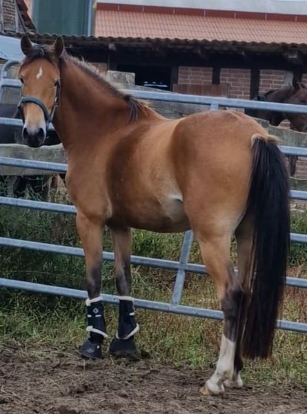 Ce jeune poney impressionne par ses trois très bonnes allures de base et une qualité de mouvement exceptionnelle. Il a déjà reçu une prime de poulain, ce qui souligne sa qualité et son potentiel. Le poney est extrêmement attaché aux humains, curieux et agréable à manipuler. Il apprécie l'attention et se réjouit de pouvoir établir un lien avec son nouveau propriétaire. Étant donné qu'il n'a pas encore été dressé, il offre une excellente opportunité de développer et de façonner un jeune talent de manière individuelle - idéal pour les cavaliers de loisir ambitieux ou les cavaliers de compétition qui recherchent un poney avec un bel avenir. Si vous êtes à la recherche d'un partenaire spécial qui souhaite grandir et apprendre avec vous, n'hésitez pas à me contacter !