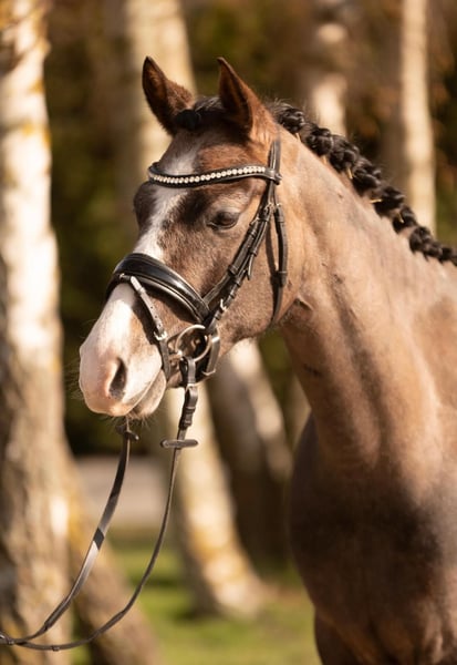 For Sale on behalf of the owner: - German Riding Pony mare - 4 years old - Currently 1.44 m (14.1 hh) - Sired by Cosmos Callidos NRW - Modern type with excellent basic gaits - Suitable for jumping, dressage, and eventing - Age-appropriate, gently worked; already shows great potential and a strong willingness to perform under saddle - Very good jumping technique, careful and with good overview at the jump - Recently brought in from summer pasture; before the summer break, ridden on the arena and in the indoor, with experience over small courses - Ideal for ambitious riders seeking a young horse with sport potential - Farrier- and loading-friendly - Price: €6,500 negotiable Videos available upon request.