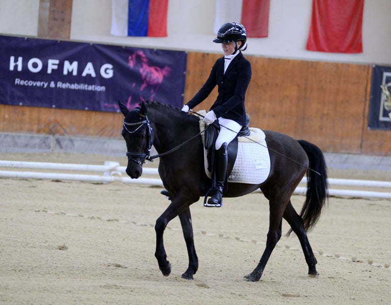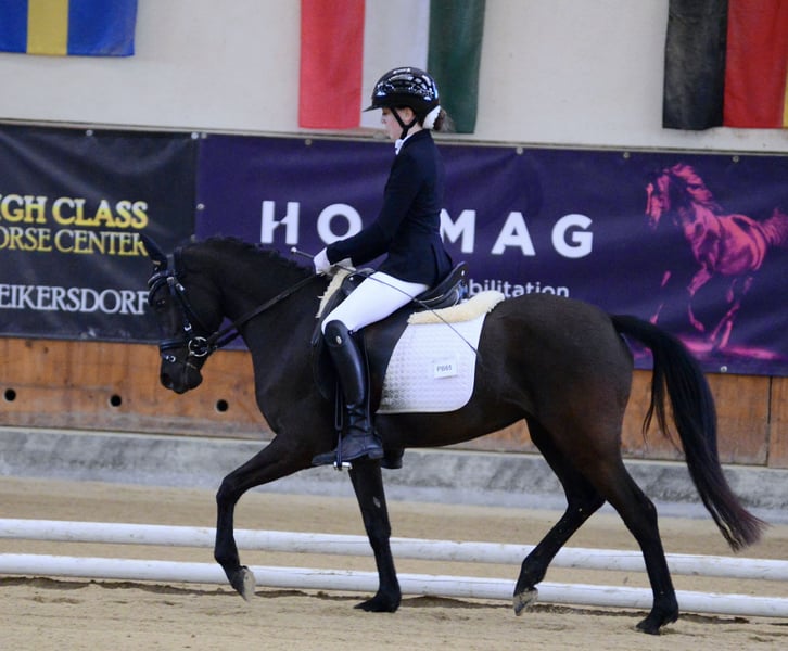 Bildschöne bereits weit geförderte Dressurponystute. Derzeit ist sie 4 jährig und 144 cm groß . Sie konnte bereits mehrere Siege auf Dressurturnieren verzeichnen, mit Wertnoten bis 7,8. Sie bringt ebenfalls großes Sprungtalent mit auf den Tisch, hier fehlt es leider noch an Parcoursroutine. Sie ist mit Kindern und jungen Reitern vertraut. Sie geht ebenfalls gerne ausreiten. Sie ist Schmiede und Verladefromm und Herdentauglich. Sie findet sich sowohl in einer Box als auch im Offenstall zurecht. Wer ein wirklich feines Pony sucht ist bei ihr genau richtig. Sie steht derzeit in Wien im Prater und kann gerne jederzeit besichtigt werden.