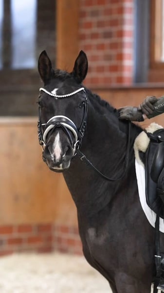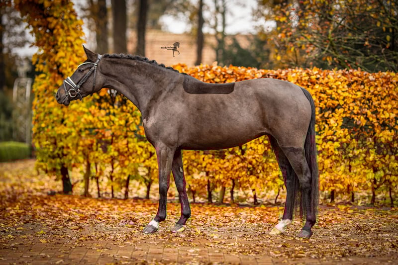 A very typy young mare with excellent rideability, expressive movement, and an interesting pedigree for breeding purposes. For sale is an exceptionally typy, nearly 5-year-old mare by Cosmo Callidus, standing at 146.5 cm. This elegant, black-brown young mare impresses with her harmonious conformation, impeccable character, and above-average movement quality – a promising young prospect suitable for dressage, breeding, or show jumping. She is in age-appropriate training and currently performs at solid A-level, already demonstrating a high degree of collection. Under saddle, she moves with rhythm and suppleness, maintaining consistent contact and a natural balance. Her rideability, fine responsiveness to aids, and pleasant movement pattern make her an ideal riding pony with great sporting potential, given proper support. In the walk, she impresses with high-quality movement; her trot is characterized by pronounced elasticity, excellent shoulder freedom, and active hindquarters. Her canter is uphill, springing well through the body and always balanced. The walk is rhythmical, ground-covering, and clearly connected. Over fences, she shows natural talent and awareness, though she has not been further trained for jumping, as my focus lies in dressage. In daily handling, she is exceptionally friendly, very human-oriented, affectionate, yet also willing and performance-minded. She scores with a fine temperament, reliability, and a controlled, intelligent nature, making her also suitable for ambitious children or young riders. At the Elite Mare Show in Wüsting, she convinced with her type, foundation, and movement strength. From a breeding perspective, this mare is of great interest, as she carries valuable performance bloodlines on her sire’s side through Cosmo Callidus and comes from a dam line that includes both No Limit (deceased) and Halifax (no longer used for breeding) – a rare and high-quality genetic combination that makes her an attractive option for breeding. An exceptionally rideable, typy, and straightforward young mare with immense movement potential and a valuable pedigree – ideal for dressage prospects, FEI competition, or demanding breeding programs.