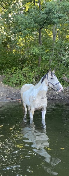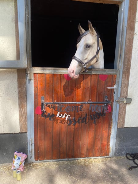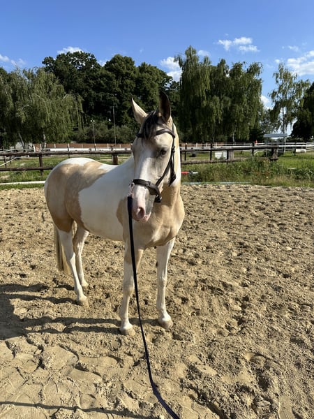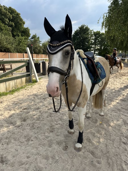 I unfortunately have to part with my mare Wandora, as I must admit that we simply do not match. Wandora loves jumping and should continue to be developed in this discipline. She is a very attentive pony, though sometimes a bit spooky. However, she doesn't bolt; she just tucks her hindquarters and takes a little hop forward, but then she is immediately back with you. She definitely does not have any bad habits like bucking or rearing. She is sensitive to ride and handle. Loading into the trailer is not a problem. I have also taken her out for rides in the light several times, and she handles everything without issues. She still has a lot to learn, as she is more like a 4-year-old in terms of training due to having had a baby break. Health-wise, she is in very good condition. Her teeth have been done, she has had physiotherapy, she is regularly seen by the farrier, and all vaccinations are up to date. A comprehensive vet check was done in July, which came back excellent. Her fitted jumping saddle, including bridle, is included in the price.