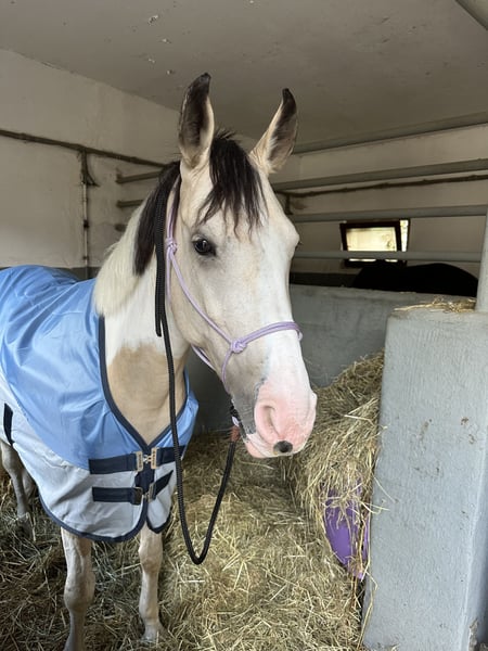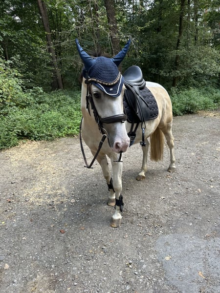 Ich muss mich leider von meiner Stute Wandora trennen, da ich mir einfach eingestehen muss, dass wir zwei einfach nicht zusammen passen. Wandora liebt das Springen. Darin sollte sie auch weiter gefördert werden. Sie ist ein sehr aufmerksames Pony, was manchmal ein bisschen schreckhafter ist. Sie geht aber nicht durch. Sie zieht dann ein bisschen den Po ein und macht einen Hüpfer nach vorne. Ist dann aber auch sofort wieder bei einem. Unarten wie bocken oder steigen hat sie auf keinen Fall. Sie ist aber fein zu reiten und im Umgang auch eher sensibler. Hänger fahren ist kein Problem. Ich bin auch schon öfters mit ihr in die Leucht zum ausreiten gefahren. Das macht sie alles problemlos mit. Sie muss halt noch einiges lernen, da sie reiterlich eher wie eine 4jährige zu sehen ist, da sie schon eine Babypause hatte. Gesundheitlich steht sie sehr gut dar. Zähne sind gemacht, Physio war da, regelmäßig beim Schmied und alle Impfungen sind vorhanden. Es wurde im Juli eine große AKU gemacht, die top ausfiel. Ihr angepasster Springsattel inkl. Trense ist mit im Preis.