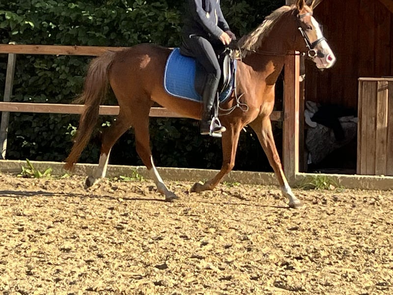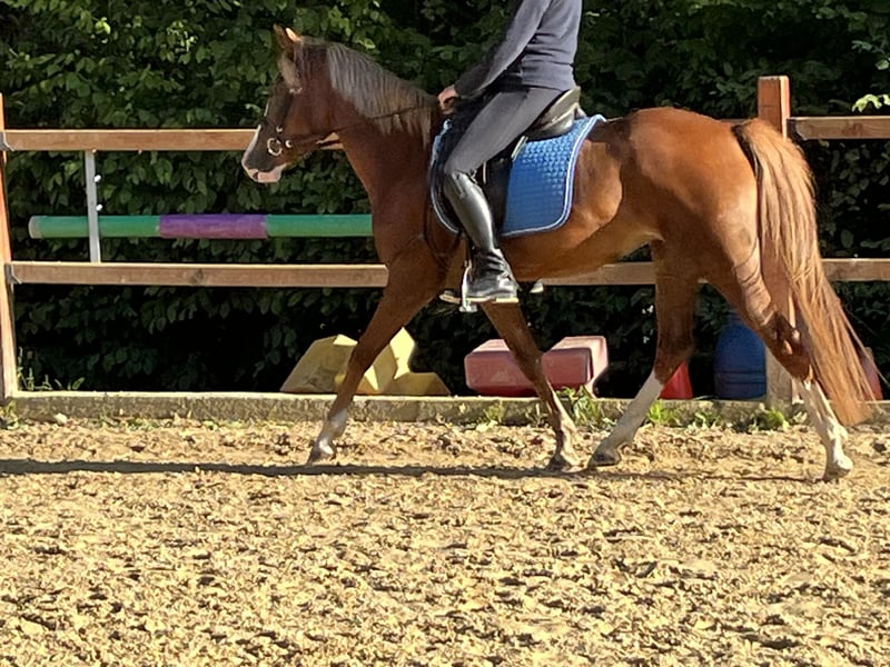 Coco Our beautiful German Riding Pony is almost 5 years old and stands at 1.47 m tall. She is very people-oriented, sweet, and affectionate in handling! She already has a great basic training and can be ridden up to A-level dressage; Coco also enjoys jumping small obstacles. She is familiar with lunging and also with trail riding. Coco has full papers, is microchipped, and vaccinated. Transport can be arranged! 0160/1884786