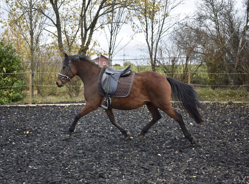**Deutsches Reitpony - Stute mit bester Bewegung** Zum Verkauf steht eine bezaubernde Stute, ein Deutsches Reitpony, geboren im Jahr 2021. Diese talentierte braune Stute hat ein Stockmaß von 148 cm und eignet sich hervorragend für die Dressur. Sie überzeugt durch ihre ansprechende Ausstrahlung und ihr charakterstarkes Wesen. Mit ihrem jungen Alter bietet sie viel Potenzial für die Ausbildung und Entwicklung in der Dressur. Die Stute hat bereits erste Erfahrungen im Umgang mit Reitern gesammelt. Sie ist aufgrund ihres Alter eher für erfahrene Reiter geeignet, die ihr das nötige Vertrauen und die Förderung geben möchten. Bei Interesse oder für weitere Informationen stehe ich Ihnen gerne zur Verfügung. Besuchen Sie uns und lernen Sie diese wunderbare Stute persönlich kennen!