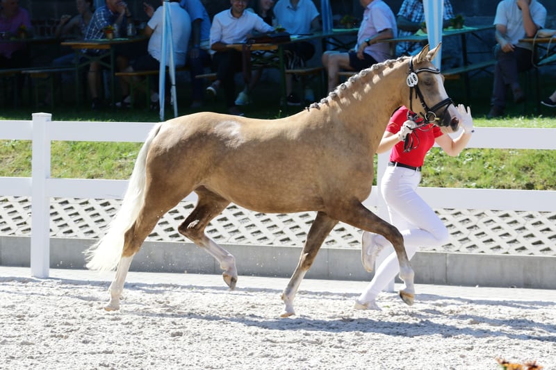 Una verdadera atracción visual: nuestra hermosa y premiada yegua de cría "Dorie". Combina un hermoso tipo de pony de equitación con movimientos básicos atractivos y es muy fácil de manejar. Desde su potranca, Dorie llamó la atención como la potranca vencedora en el Campeonato de Potros de Pony de Turingia. La joven yegua está bien montada y muestra mucho carácter bajo la silla. Dorie está inscrita en el libro genealógico, ha pasado pruebas de rendimiento y en 2024 recibió la Prémium Estatal. Fue la reserva de la campeona de yeguas de ponis de doma clásica de Alemania en 2024 en Turingia. En 2025, logró colocarse con éxito en concursos de caballos de doma (¡contra caballos grandes!). Su padre, Genesis BL, inició su carrera en 2018 en la selección de ponis en Verden, donde fue segundo reserva de campeones. A los tres años fue ganador en el campeonato de Hannover y, entre los 3 y 6 años, tuvo éxito en el Campeonato Federal en Warendorf. Actualmente, es un ganador frecuente en pruebas de nivel hasta la clase L. La madre de Dorie es la exitosa yegua de cría premiada, Dahlia. Antes de comenzar su carrera de cría, Dahlia fue triunfadora en competiciones hasta la clase L. Hasta ahora, tiene en su descendencia tres hijos aprobados y dos yeguas premiadas. Sus crías actualmente tienen éxito en competición hasta la clase L. La media hermana materna de Dorie es la yegua campeona a nivel federal en la categoría de yeguas de salto en la FN Bundesstutenschau Sportponys 2024 en Münster, y fue galardonada con la Prémium Federal. Otros ponis alemanes de alta calidad disponibles bajo consulta.