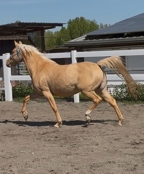 Prachtige, lieve en beweegingssterke dochter van Dating AT x Champion Deluxe. DARLING, zoals haar naam al aangeeft, is echt een klein goudschatje. Vanwege een verkleining van de voorraad bieden wij deze geweldige merrie helaas te koop aan. Ze kent het in- en uitladen van de trailer, poetsen, leiden en longeren. Zonder zadel hebben we al eens op haar gezeten. In december hebben we haar voor het eerst aangezadeld, en dat ging heel gemakkelijk. Ze is zo mega braaf en leert snel. En ze wil altijd graag gefallen. Dat maakt haar heel cool en relaxed. Ze heeft een heel lief karakter. Ze is regelmatig gevaccineerd, ontwormd en gechipt. Ze kent de hoefsmid die elke 6 weken komt en is daarbij zeer braaf. We wensen haar een geweldig thuis waar ze verder gestimuleerd wordt, want ze heeft kwaliteit in overvloed. Ze beschikt over drie prachtige gangen. Ze is een zeer nieuwsgierige en liefdevolle merrie die altijd haar beste kant wil laten zien. Vanwege haar uitstekende afstamming is ze zeker ook interessant voor de fokkerij. Ze is heel sociaal en kan goed overweg met elk ander paard. Bij ons is ze altijd gezond geweest en heeft de dierenarts alleen voor vaccinaties gezien. Voor meer vragen of interesse in video's van haar vrij lopen, kunt u contact opnemen via 01602294861.
