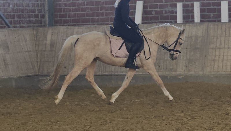 Calise SI is a approximately 14.8 hands tall German Riding Pony mare with excellent pedigree. She is still growing and developing, and her conformation will improve further. Her sire is Cassini, with lines including FS Cocky Dundee, Go Go Girl/Be my Crazy Girl, Spring Star’s Spirit, and Beyonce. Calise comes directly from the breeder. She has recently been lightly backed and has previously been allowed to grow up naturally in a herd environment. :-) She has potential for both dressage and jumping, but it is important to highlight that she is truly an exceptional children's pony. She has an outstanding character, is incredibly sweet and calm in all situations. Such ponies are rare; Calise is a genuine rarity! She has been healthy so far. A health check can be arranged upon request. For more information, we look forward to your call at: 0177/2721831.