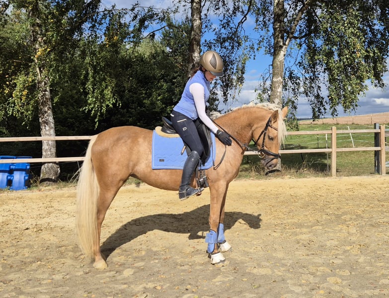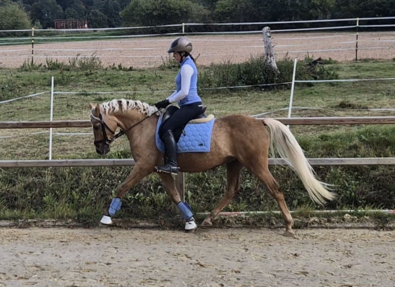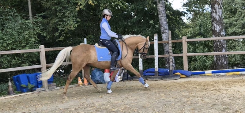 Dieses Pony ist eine unglaublich verschmuste und neugierige, junge Stute, die ein neues Zuhause sucht. Sie ist auf einem sehr guten Dressurpferde-A-Niveau geritten, läuft sicher im Gelände, wurde bei uns zum Teil auch im Schulbetrieb (unter fortgeschrittenen Reitern) eingesetzt und kann sogar gebisslos geritten werden. Besonders gern macht sie klassische Handarbeit oder Bodenarbeit. Sie kann auch einige Zirkuslektionen. Wer ein sehr aufmerksames und sensibles Pferd sucht, der hat mit ihr eine Partnerin gefunden, die mit ihren Menschen durchs Feuer geht. Sie lässt sich super verladen, mit Wasser abspritzen und ist auch im Umgang mit anderen Pferden unkompliziert. Aufgrund ihrer Größe ist sie auch was für Erwachsene, denn sie deckt gut ab. Sie hat eine vielseitige Veranlagung, sodass sie sowohl für die Dressur, für den Springsport, als auch als reines Freizeitpferd oder ggf. für den Westernbereich geeignet ist. Ihr gekörter Vollbruder "Candidus von Nüx" läuft aktuell erfolgreich im Springsport und mit ihrer Schwester habe ich im Finale der Landesmeisterschaften Dressur teilgenommen. Sie hat auch eine interessante Farbgenetik und würde sich auch für die Zucht eignen. Sie ist die Tochter des Söl´rings Cuvée. Der Hengst war im Rahmen der Körung des Pferdestammbuchs S-H am 06.02./07.02.2015 Sieger bei den Kleinen Deutschen Reitpferden und absolvierte erfolgreich seinen 30-Tage-Test in München. Großvater Casino Royal, ehemaliger Stationshengst bei Danica Duen, sorgte in den letzten Jahren als Muttervater einiger ihrer Stationshengste und vieler Zuchtstuten für Furore, wie z. B. mit dem dreifachen Bundeschampion DSP Cosmo Royal, dem süddeutschen Siegerhengst Herzzauber D, der Bundeschampionesse Herzrose D usw. Mütterlicherseites kommt sie aus dem hoch erfolgreichem Stamm der Raja von Tetworth Crimson. Aus ihr stammen u.a. "Bodethal's Rabea" v. Dornik Double, die sich im Finale der Landesmeisterschaften platzieren konnte. Weiterhin entstammen von Raja die international erfolgreichen Dressurponys Bodethal´s Romy und Bodethal´s Noble Boy, den Bundeschampionatsfinalisten Bodethal´s Rania und Bodethal´s Noble Dancer und dem für das BuCha qualifizierten Springpony Bodethal´s Night Light. Ich gebe sie nur in beste Hände ab, wo ich merke, dass es passt und man ihre Charaktereigenschaften zu schätzen weiß. Sie muss nicht verkauft werden, sondern ich gucke langfristig nach einem neuen Zuhause, da ich ihr zeitlich nicht mehr gerecht werden kann. Bei Interesse oder weiteren Fragen freuen wir uns über Ihre Nachricht!