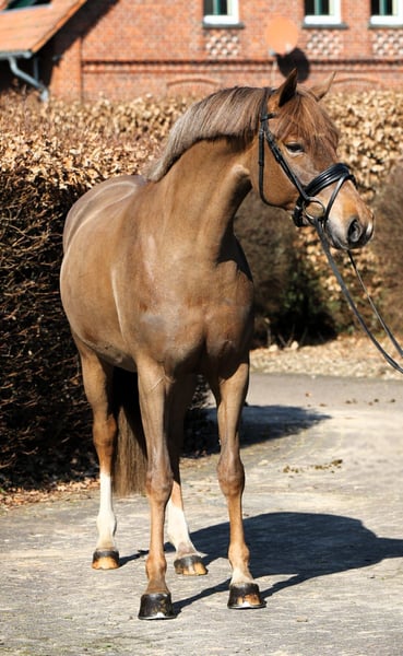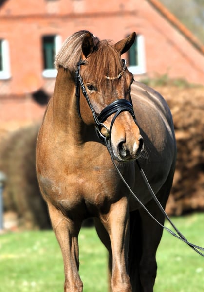 This 5-year-old mare comes directly from the breeder and is now available for sale. Daily is highly recommended for anyone seeking a straightforward pony due to her absolutely gentle nature. Never mean! She is incredibly well-behaved and easygoing, effortlessly going out on rides, on the arena, and in the indoor hall. A perfect all-round pony for amateurs, mother-and-child teams, or ambitious dressage riders. With a height of 153 cm, she also suits adult riders very well. Fully X-rayed with no findings.