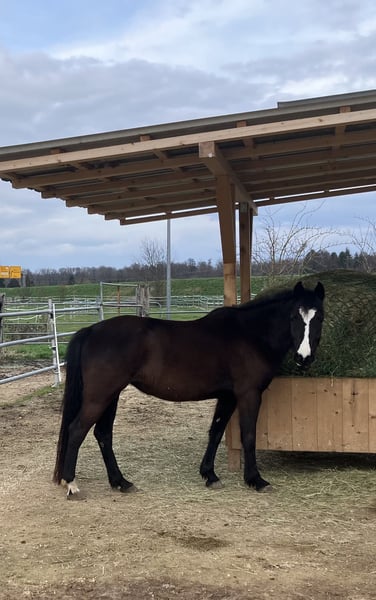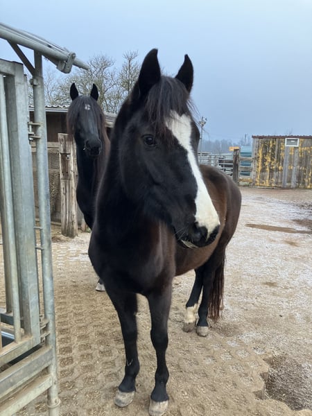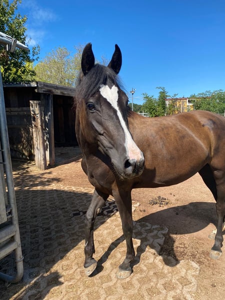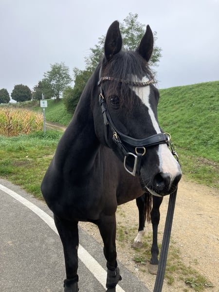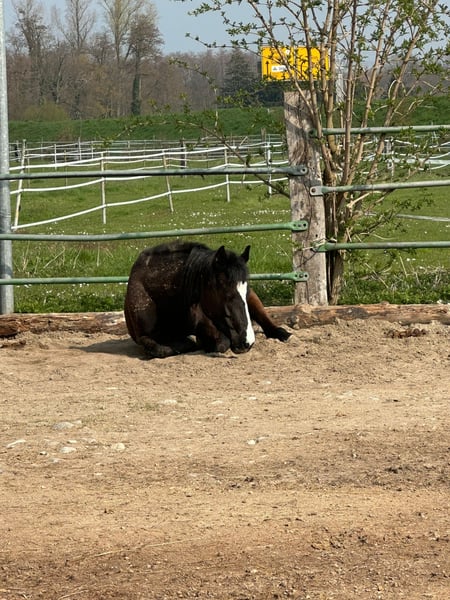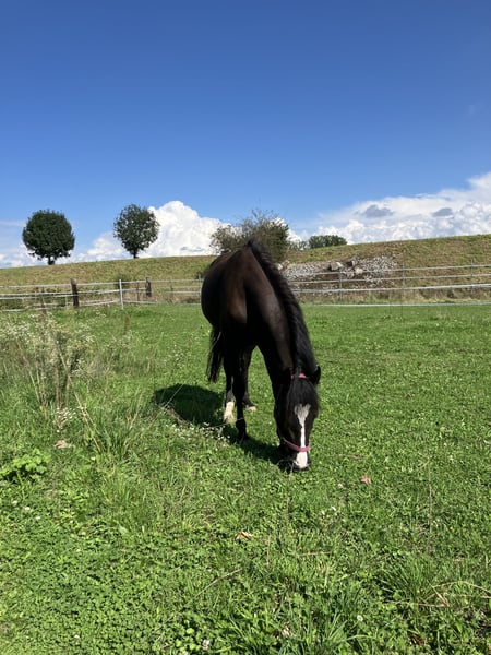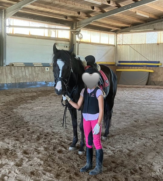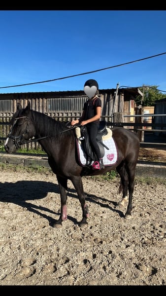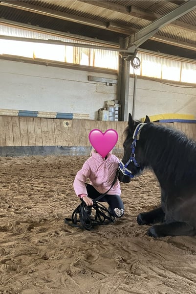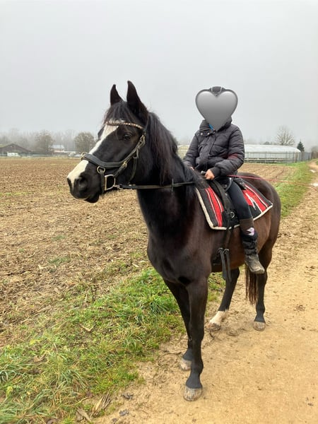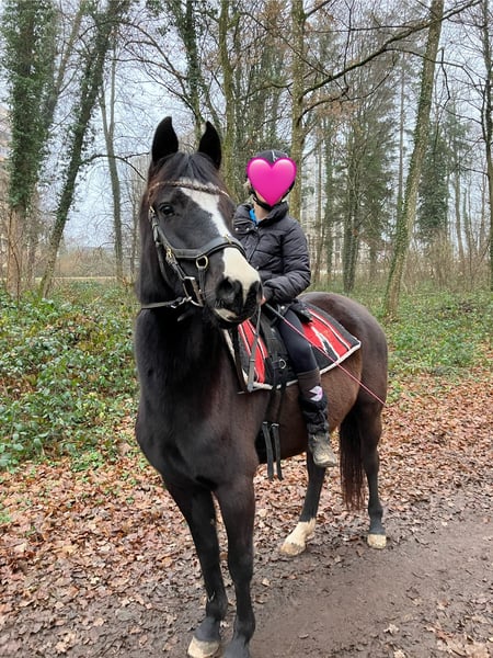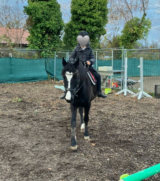 Schöne deutsche Reitponystute mit einmaliger ganz besonderer herzförmiger Blesse. Wir haben sie 2025 über das Ponyforum gekauft. AKU von DEZ 2024 inkl Röntgenbilder ohne Befund liegt vor, es kann gerne auf eigene Kosten eine AKU durchgeführt werden. Das Pony hat ein ganz liebes zutrauliches Wesen und wurde im letzten Jahr hauptsächlich von Kindern geritten, auch von Anfängern an der Longe wo sie stets lieb ist. Wir gehen auch regelmäßig spazieren, Traktoren, Kinderwagen, Roller, Baustellen etc. sind kein Problem für sie. Da wir leider großes Pech mit einer Sattlermeisterin hatten, wurde das Pony zu lange mit einem unpassenden Sattel geritten wodurch sich Rückenschmerzen entwickelt haben, verbunden mit einem Abbau von Muskeln im Rumpfträger-und Rückenbereich. Außerdem haben sich dadurch Muskelverspannungen gebildet, die momentan bereits durch Physio und Osteopathie behandelt werden. Es ist wichtig, dass dies verantwortungsvoll wieder aufgebaut wird, was sicherlich Geduld erfordert um das Pony nicht zu überfordern. Deswegen wird sie unter Ihrem eigentlichen Wert verkauft. Wichtig für sie ist auch die Offenstallhaltung mit anderen Pferden. Das Potential bringt sie mit, ein tolles Kinderpony zu werden und sie deckt auch Erwachsene bis ca 165 cm / 55 kg sehr gut ab. Da wir eben nun keinen Sattel haben, ist probereiten nur bedingt möglich (Kinder können auf dem Westernpad reiten). Sie läuft problemlos barhuf und nicht fühlig im Gelände, Hufpflegerin ist kein Problem, sie macht eigentlich alles mit. Bei neuen Sachen ist sie neugierig statt nervös. Sie ist turnierkonform geimpft(Herpes und Influenza) und regelmäßig entwurmt. Diese liebe 6jährige Stute ist ein tolles Pony, mit welchem sich Kinder zusammen entwickeln können. Wichtig ist, dass eine verantwortungsvolle Person mit viel Pferdeerfahrung dies begleitet, dann steht einer großen Pferdefreundschaft nichts mehr im Weg! Wir verkaufen sie, da wir für ihr erforderliches Training nicht genug Zeit haben um dem Pony gerecht zu werden. Außerdem wird sich unsere familiäre Situation ändern so dass wir voraussichtlich umziehen müssen und das Pony dorthin nicht mitnehmen können. Reitvideos sind vorhanden mit Kindern. Bei Interesse/weiteren Fragen einfach melden.