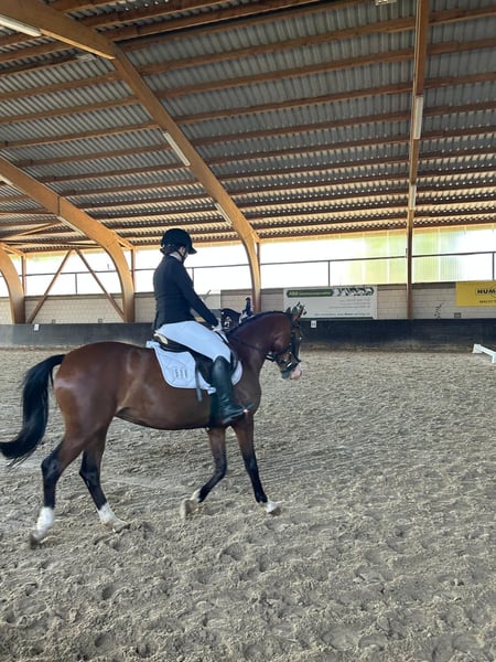Wegen Umstieg auf ein Großpferd haben wir uns schweren Herzens dazu entschieden, für unsere bildhübsche Ponystute Davinia ein neues Zuhause zu suchen. Sie ist sechs Jahre alt und eingemessen mit 1,44m hat sie die perfekte Größe für ein Kind, Jugendlichenn oder kleine Erwachsene. Im Umgang mit Kindern ist sie sehr freundlich. Auch Vierjährige können gefahrlos auf ihr reiten. Beim Ausreiten scheut sie nicht. Sie stammt von Hill’s Damon ab und hat eine elegante Erscheinung, einen freundlichen Charakter und eine hohe Lernbereitschaft. Die Stute hat ein gutes Grundtempo, ist brav im Umgang und in allen drei Gangarten gut zu reiten (mit und ohne Ausbinder) und dabei auf einem soliden E-Niveau. Sie steht momentan in Boxen- und Weidehaltung in einer gemischten Herde aus alten und jungen Pferden, wo sie sich sehr verträglich zeigt. Im Viereck weiß sie sich sicher und schön zu präsentieren. Sie ist lektionssicher und turniererfahren, geht in der Abteilung mit und ohne Ausbinder. Davinia ist absolut gesund, wurde immer turnierkonform durchgeimpft und geht ohne Probleme auf den Hänger und ist brav beim Schmied. Sie ist immer kopfklar, lieb und händelbar. Sie ist jedoch kein Anfängerpony, da sie sehr fein zu reiten ist. Bei weiteren Fragen melden Sie sich gern unter der Rufnummer: 0171-2747326.