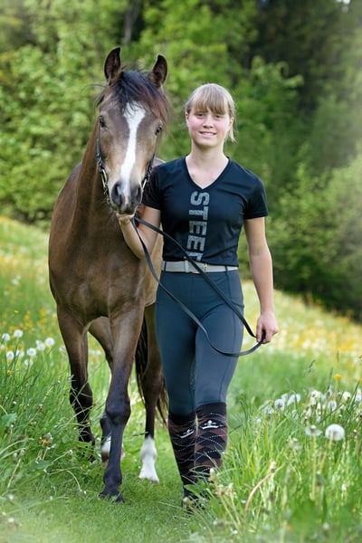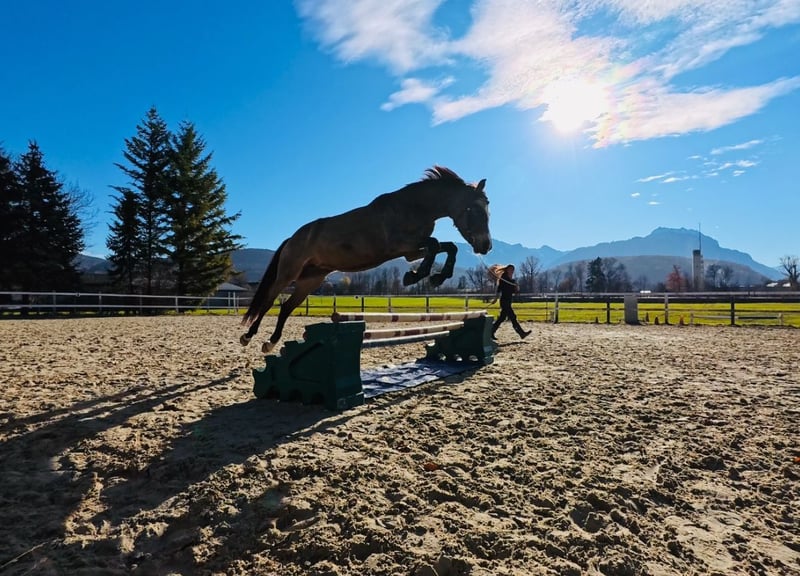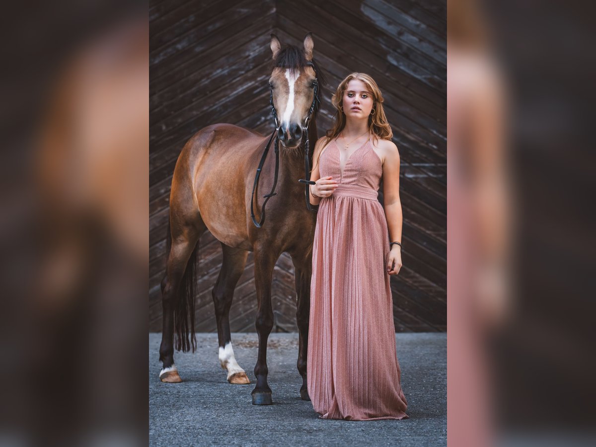 Nous avons décidé de vendre notre jument poney de selle de 4 ans à la robe spéciale par Herzkönig NRW. La jument est issue de notre élevage, a grandi chez nous et a été formée par nous avec ménagement. Présentée cette année en concours de dressage, elle a tout de suite été victorieuse et classée en classe A**, même parmi les grands chevaux. En dressage, elle est championne nationale 2024. En saut d'obstacles, elle n'a pas encore été présentée en compétition, mais elle peut être utilisée dans toutes les disciplines. Avec ses 145 cm actuels, la jument reste dans la norme. Absolument intrépide et honnête. A ne vendre qu'à des mains bienveillantes et dans un foyer de 5 ⭐. Comme la jument coopère, elle est vendue bien en dessous de sa valeur. Lors de la préparation d'essai, il y a des frais de 50 euros.